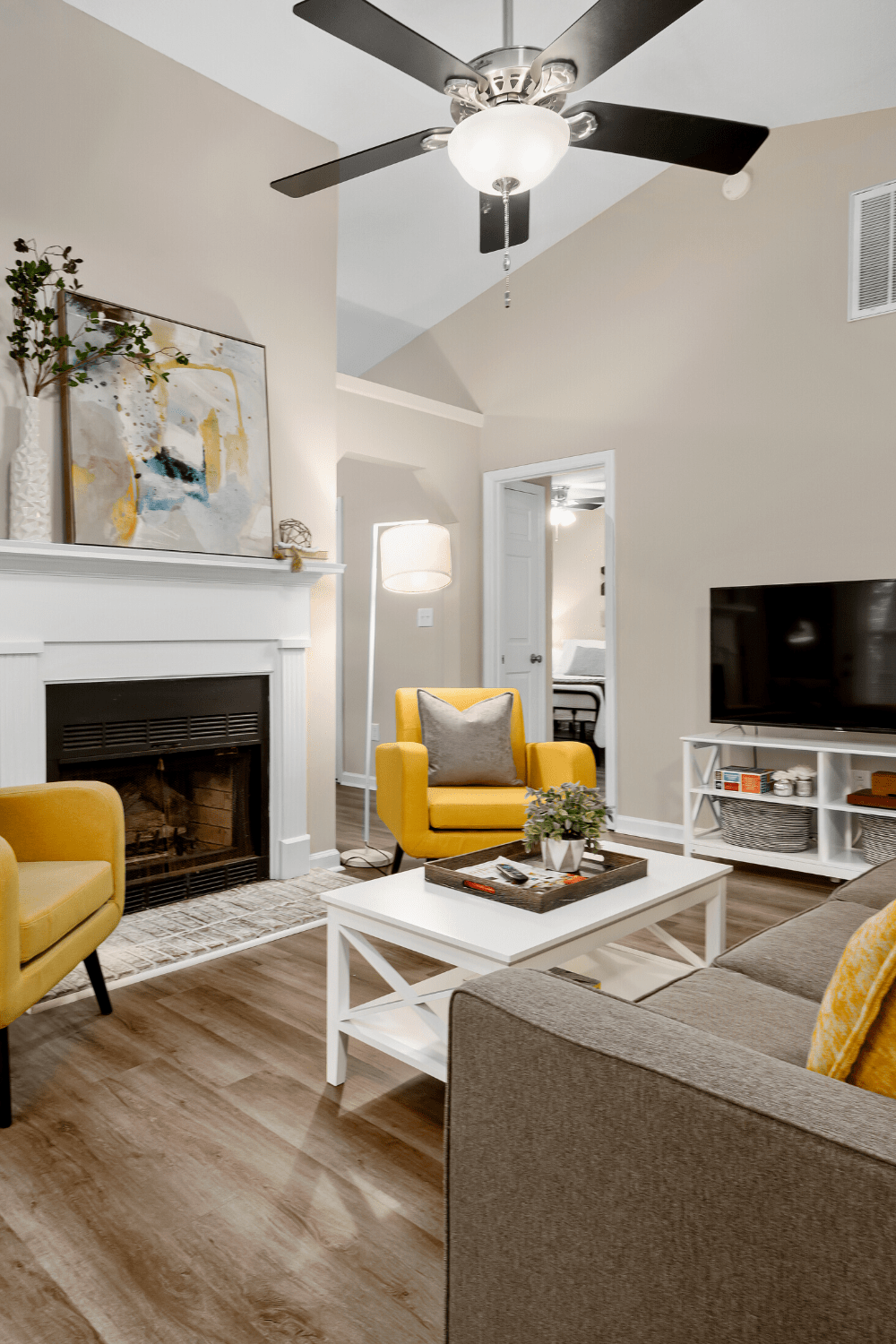 Quadros e pinturas são uma maneira excepcional de adicionar personalidade e estilo à decoração da sala. Escolha obras de arte que tenham significado para você ou que combinem com o estilo da sua decoração. Se a sala for pequena, prefira quadros de tamanhos menores.